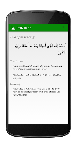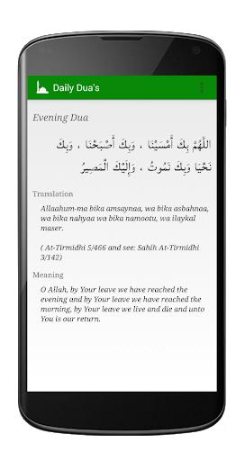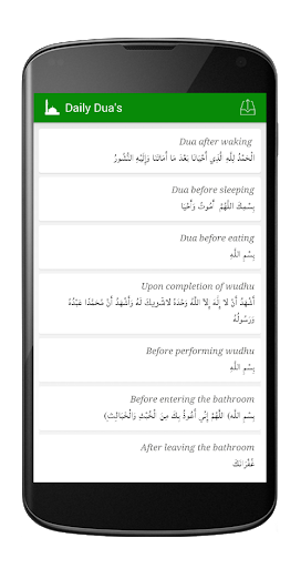 This free application provides a collection of Dua's for different times and instances recited through-out the day with hadeeth references.