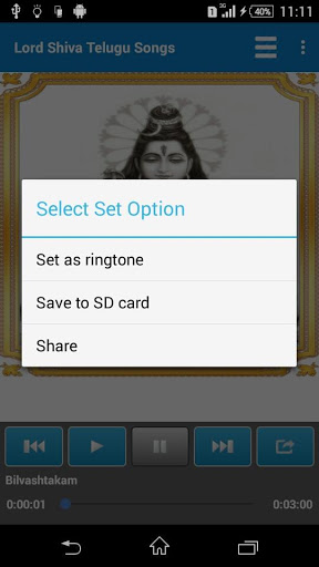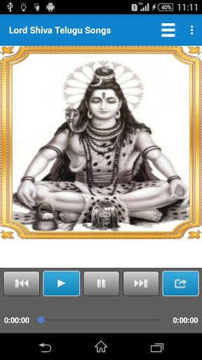 Lord Shiva devotional telugu songs with play, pause, next, previous, select song features.