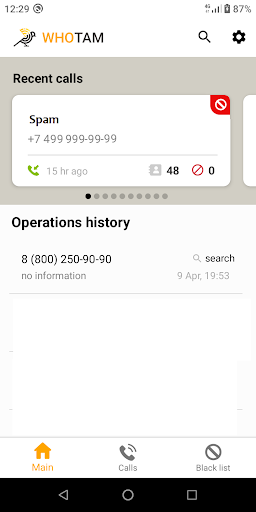 The free caller ID displays a caller's data when receiving a call. You can use the in-app search to find information about any number you're interested in.