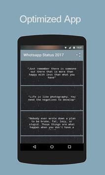 WhotSapp status 2017 is a new year gift we made for someone who likes status and quotes.In android there, you can see lots of status applications, but you never get an application like WhotSapp status 2017.We made WhotSapp status 2017 for a new beginning in this new year.