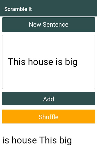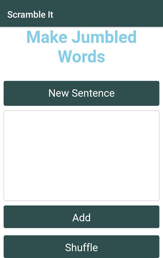 Scramble It is an app that will help you to shuffle the words of a sentence. You can enter the sentence and shuffle them, so they would become jumbled words. Shuffling can be done multiple times.