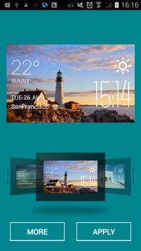 With a simpleclick on different areas, users can conduct a series of operations: settingalarm clock, calendar event, changing widget skins, reading detailed dailyweather report and check 7 day forecast and hourly forecast.
