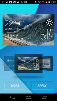 With a simpleclick on different areas, users can conduct a series of operations: settingalarm clock, calendar event, changing widget skins, reading detailed dailyweather report and check 7 day forecast and hourly forecast.