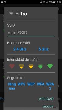 Available filters: WiFi band, Signal strength, Security and SSID