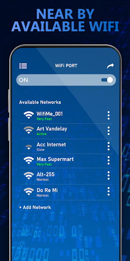 WiFi Port you can join to Wi-Fi networks, scan WiFi networks and connect. WiFi port app detects WiFi connections near to you. This WiFi internet connect helps in find WIFI networks, connect you can check nearest WiFi networks and connect them with internet WiFi Passwords connect app . WiFi port simulates the process of any wireless network with your phone.