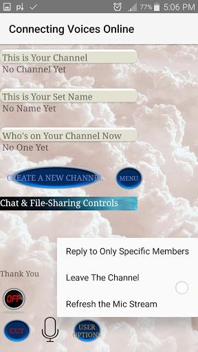 As the host, you utilize a unique set of options to control your channel, as muting, or removing users upon request.