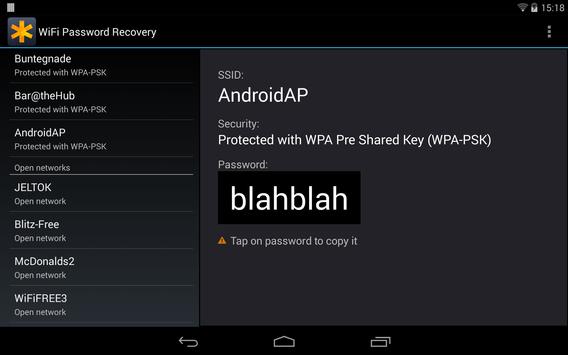 WiFi Password Recovery shows you passwords to WiFi networks to which you have connected before. Do you need to connect your new android device to your home network, but forgot your password? Want to share a 32-symbolic wifi password of random characters with your friend? Download WiFi Password Recovery and do this in two taps!