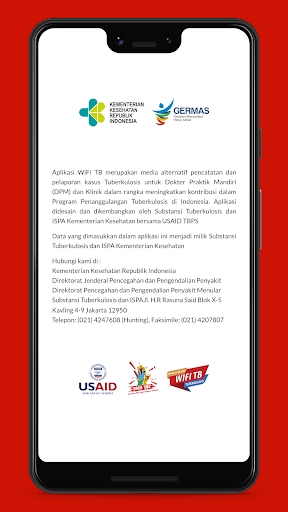 La tuberculose WiFi (notification obligatoire de la tuberculose) est une application mobile alternative pour les rapports suspects, le diagnostic et les patients atteints de tuberculose par des médecins et cliniques pratiques indépendants qui n'ont pas utilisé le SITB et se limitent aux ressources humaines et aux infrastructures et / ou aux contributions uniquement jusqu'à la découverte suspectée.
