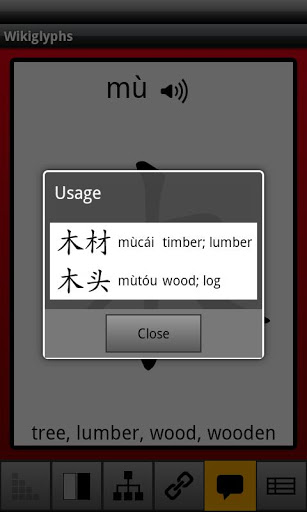 Whilst beginners will find it useful navigating characters through the "flash card" style interface and listening to pronunciations; the application is targeted towards users with a novice level of the Chinese language and up.