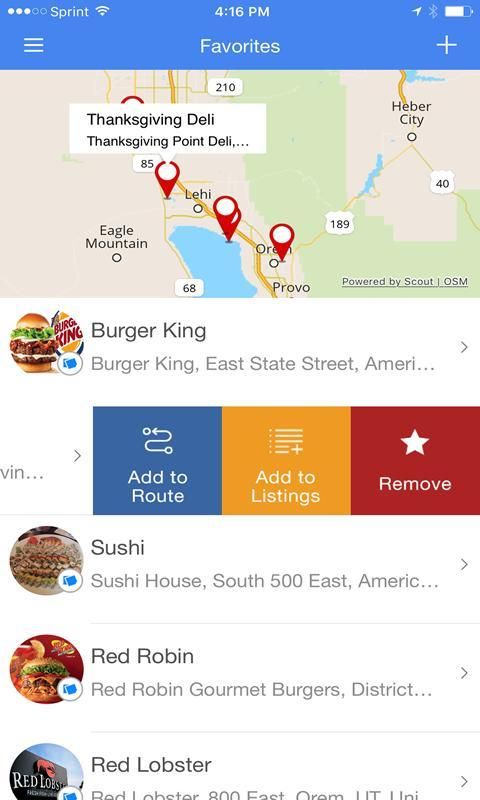 You also have the option of having specific locations added to your favorites list. This list can be accessed at any time during navigation. If you have a favorite restaurant or place of business, you can add these to your navigation route simply and easily.