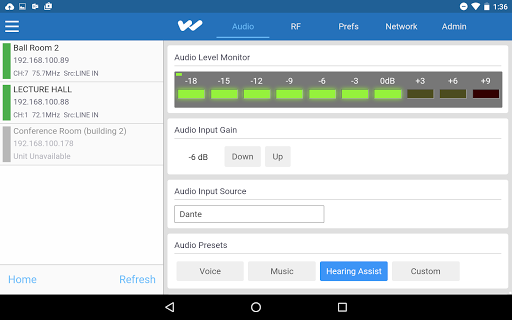 Need to change applications, input or volume, simply use the App while in the venue to hear the changes as they happen.