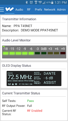 With nearly complete control of your PPA T45Net you can adjust and configure one or many units without having to rely on having physical access to the transmitter.
