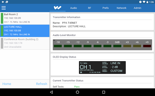 With the Williams Sound T45Net Mobile App you can administer and control one or multiple Williams Sound PPA T45Net transmitters.