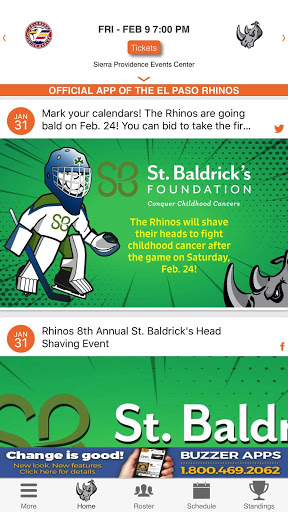 Welcome to the official app of the El Paso Rhinos Hockey Club of the Western States Hockey League. This is your mobile source for all the latest news, social posts, scores, player stats, player details, schedules, standings, videos and official content from the Rhinos. Download for free today and take the Rhinos with you everywhere you go.