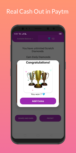 }-- User can get randomly rewards by scratch card. It's depend on your luck and chance to win some virtual coin. This app is designed for entertain purpose. we will hope user will entertain or engaged with this app.