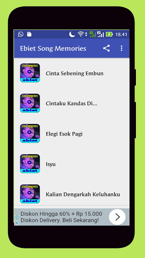 Aplikasi ini berisi kumpulan lagu-lagu ebiet song memories.