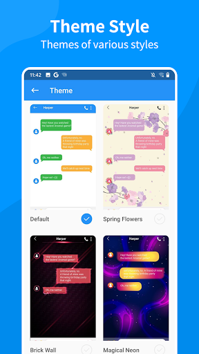 With a lot of online themes to download and use, highly customizable settings to edit your own SMS applications, fast SMS sending, support for sending pictures and voices, and a highly self-editable SMS application.