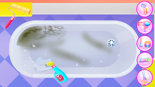 This game will make you feel like cleaning is not a chore, but rather a fun activity. With your help, our precious kitty Kate will have a clean house in no time. Let’s go to the bedroom and see what we are dealing with. First, remove the spider webs and pick up the piles of clothes that lie on the ground. Put the clothes back in the closet, throw away the trash, and don’t forget to vacuum! Move on to the kitchen and clean it now so you will be able to bake goods in the oven. Cookies are delicious so I say we treat ourselves for all the hard work we have been doing. Prepare the dough to be put in the oven and mold it with the help of the cookie-cutter. Decorate the bear-shaped treats as you wish and let them bake. Let’s take a look at the fridge. It is so dirty! Make sure you throw away the rotten food and scrub it thoroughly. I think it is time to head over to the bathroom. Get rid of the spider webs and mop the floor. Spray the cleaning solution onto the bathtub and rub it all over until all the bacterias and mud are gone. The lavatory doesn’t look that great either. Use the WC cleaner, pour some on the toilet and then wipe it away with the sponge. You can also paint the walls if you wish. We have some surprises in store for you. After all the cleaning you deserve a treat: a fun and wonderful spa day! Take a bubbly bath, sit back and relax. Apply the face mask on and let it do its wonders. Dry off and then go to the dressing room. Try on short and long dresses or the more casual clothes and see which of these you like the most. Accessories are so important because they can change the aesthetic of an outfit. Check out the jewelry and choose a pair of shoes.