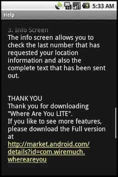 * If the SMS contains questions such as "Where Are You?", "Where R U?" or "Can you tell me where you are?", it figures out your current location and reply automatically back via SMS. As long as the keyword "where" is in the SMS the app is able to respond.