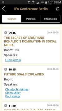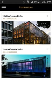 The IFA WISfans app provides detailed information about the IFA, its members, related sporting events, and allows you follow social posts from the speakers and organization. It also provides recent media content (photos, videos), news, organization background and history, and related content from social media sites, leveraging the worldwide fan ecosystem (Facebook, Twitter, Instagram, videos, photos, blogs, sponsor-supported social campaigns, etc.) to generate exciting, interactive and relevant content.