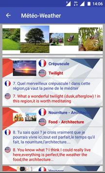• These sentences are aggregated with a thematic manner in order to be very coherent and very useful for an oral an written communication easily,quickly and effectively for every day,you can use them in your conversations and dialogues and speeches to well speak English and French.