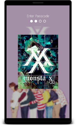 This lock screen is based on Monsta X theme. There are many Monsta X HD backgrounds in this app. You can unlock your phone using different methods like Slide to unlock, enter passcode, draw pattern, pin, etc.