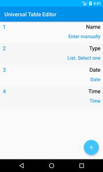 Universal Table Editor - application for easy creation of tables. If you have to work with a large number of tables from your phone, then this application is for you. It allows you to quickly create tables by templates and fill them quickly, using lists for insertion. The ready table can be imported into the Excel.