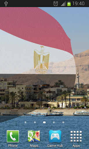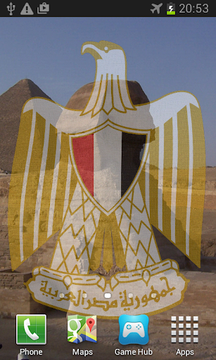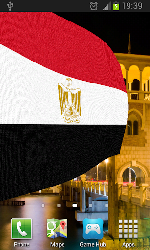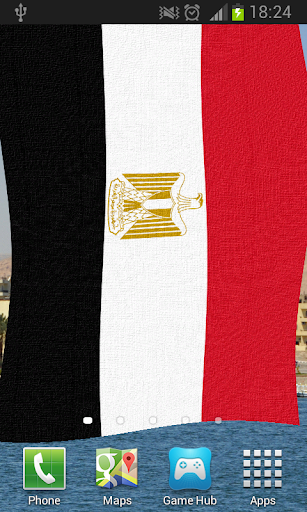 Egyptian Flag Live Wallpaper features beautiful images of Egypt overlaid with the Egyptian Flag or Coat of Arms billowing in a gentle breeze.