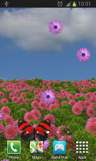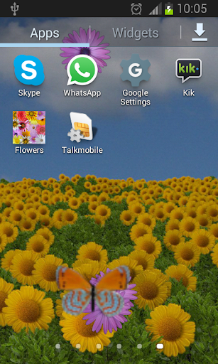Flowers Live Wallpaper features flowers and butterflies swaying gently in the wind.