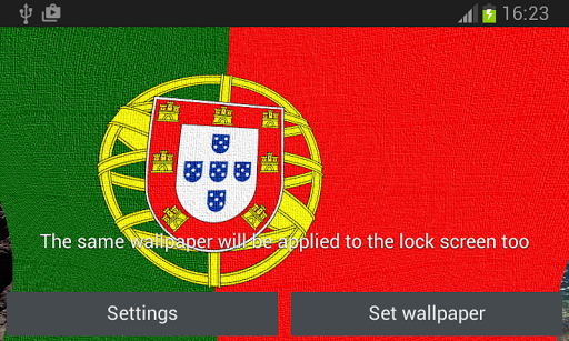 Portugal Live Wallpaper features beautiful images of Portugal overlaid with the Portuguese Flag or Coat of Arms billowing in a soft gentle breeze.