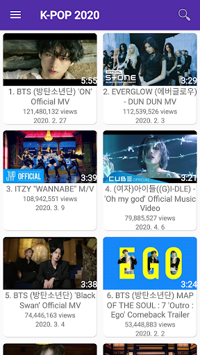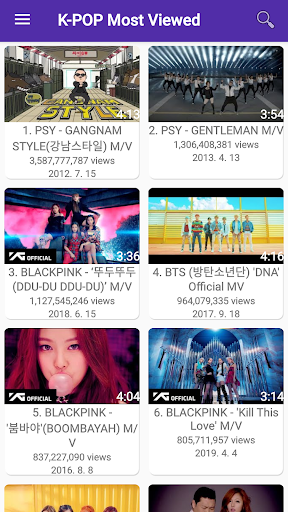 This app, you can get popular K-POP music videos by year. You can watch all videos using the built-in player or the official YouTube app (usually it should already be installed on your device) ---- 개발자 연락처 : withjsoft@gmail.com
