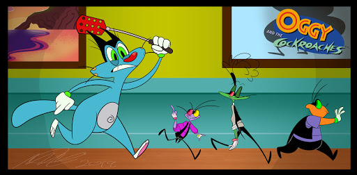 Oggy, an anthropomorphic cat, would prefer to spend his days watching television and eating, but is continuously pestered by three roaches: Joey, Marky and Dee Dee.