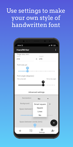 - Customize the handwriting and create your own individual style, or use the preset options;