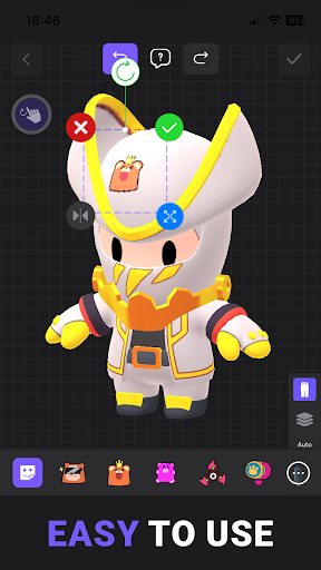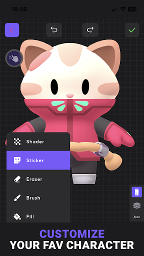 A wide variety of assets: Thetan Creator comes with a library of assets that you can use to create your skins, including Shader, Sticker, Brush & Fill. More funtions in the future such as Cosmetic models, Voice or Animation will be available soon.