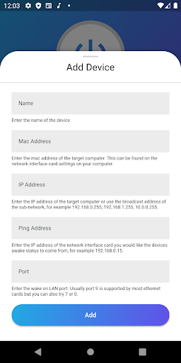 Simply add a device configuration inside the app, select the device you would like to start up and then press the power button and as long as your configuration is correct you can watch your computer start up.