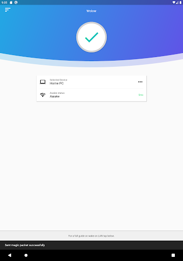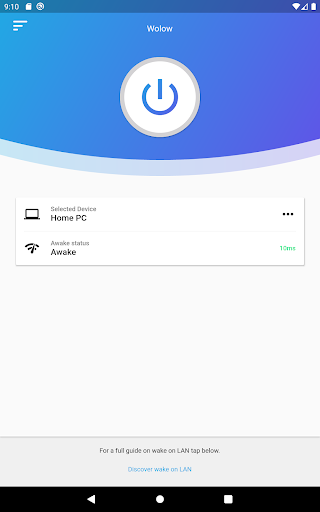 Wolow is a wake on LAN app that allows you to remotely start up a computer by sending a "magic packet" request.