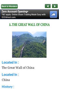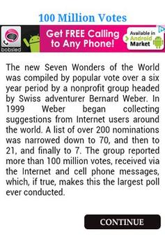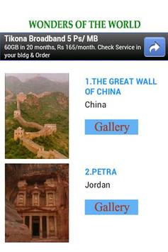 This app gives the detailed information and gallery of the seven wonders of the world.