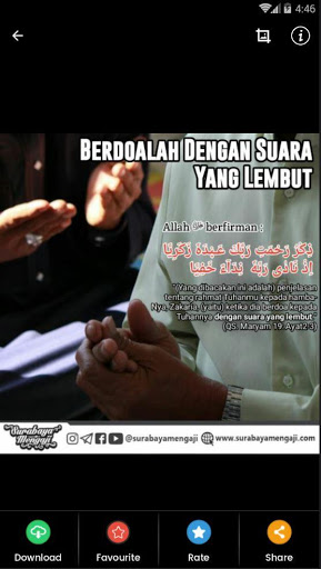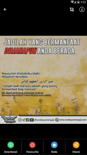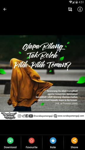 Dengan poster dakwah islami ini Anda tinggal buka aplikasinya dan pilih gambar yang ingin Anda jadikan sebagai status, dan pilih share untuk dijadikan status di seluruh media sosial yang anda punya.