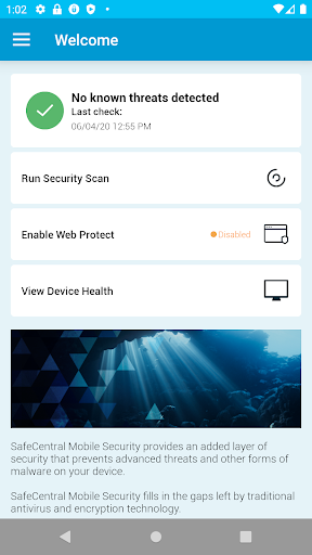 SafeCentral Mobile Security app helps protect your Android device from known malicious applications, viruses and other online threats.
