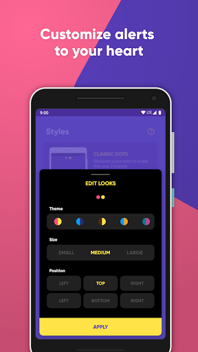 What's more, instead of plain "dots" shown by access dots on iOS14, you get to choose your own style of Access Dot, with options of different styles of alerts such as Dots, Bar or Pill shaped alerts. You can even further customize the color, size and position of the alerts on your screen, resulting in total of up to 432 unique possible styles!