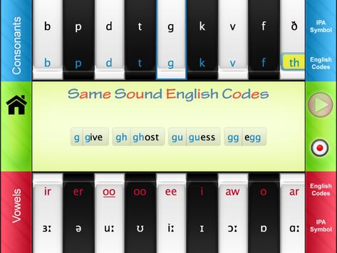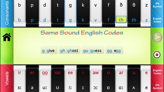* Display all the same sound English codes of any selected consonant or vowel sound.