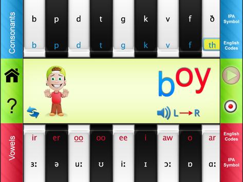 * Show all the basic 26 consonant and 21 vowel sounds that make up all the English words.