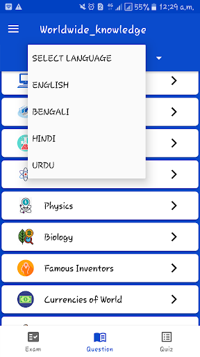 World wide General Knowledge (English , Bengali, Hindi & Urdu).In this app there have a lot of Information