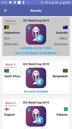 Wc2019 Application give full details of Cricket world cup 2019 like, fixture with full or team wise matches.