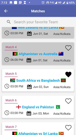Now user can set their favorite matches for get details of that matches in different menu.