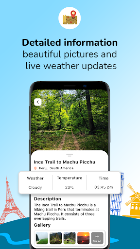 Why not download World Tour- Explore the world & popular places now and give yourself an unforgettable tour of our amazing world. With detailed information and descriptions, along with the local weather, temperature, time, the exact longitude and latitude coordinates, and an array of fantastic and amazing pictures in the gallery, you’ll not find a better and more perfect tour guide for your trips around the world.