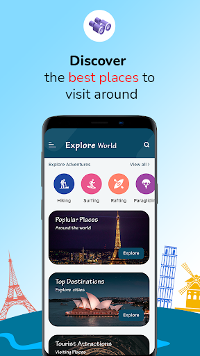 Fancy trekking around the world? World Tour- Explore the world & popular places will help you find the tallest mountains in the world for climbing. How about surfing and finding places in the surfing world perhaps? No problem, World Tour- Explore the world & popular places will help you experience the tallest waves on a rainy day. Rafting on the widest river, Paragliding and helping you find those breath-taking bird’s eye views around coastlines, Skiing and breaking through those low hanging clouds, or even Bungee Jumping and taking that leap of faith, hiking etc. - you name it and World Tour- Explore the world & popular places will be your guide in helping and showing you the best places to explore. Any place that excites you, World Tour- Explore the world & popular places will be your guide.