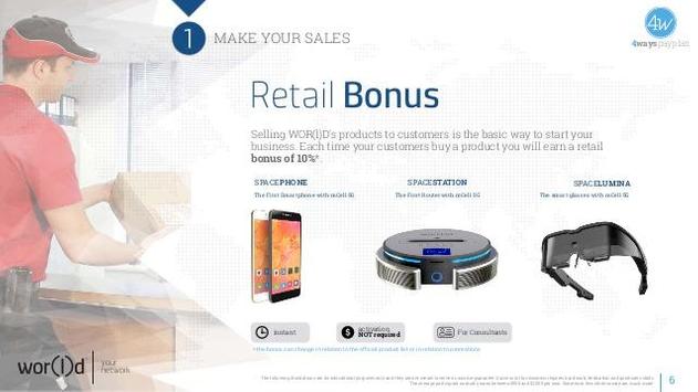WOR(l)D stands apart as a leader in the global markets of media, mobile and wearable technologies. Employing the brightest minds and best professionals, WOR(l)D constantly invest in great ideas and highly motivated people. Every WOR(l)D product reflects its passion for research, innovation and environmental responsibility. WOR(l)D operates globally, anchored by corporate headquarters and administrative offices Mission We drive next generation media and communication experience through a revolutionary Business Opportunity in the Direct Sales industry. Vision Becoming the first global network made and owned by people to provide accessible connectivity and communication to all individuals globally.