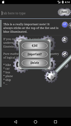 Fast and simple app for making notes in an awesome Steampunk style. All mechanical parts like gears are working like a machine.