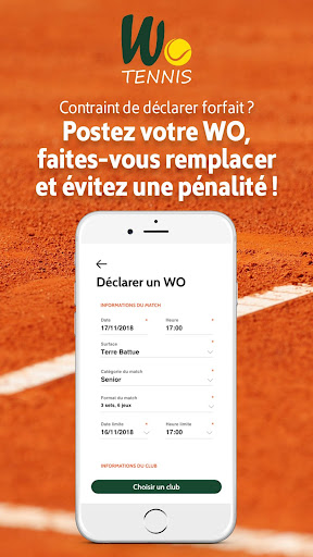 প্রতিযোগীরা ডাব্লুও টেনিস অ্যাপ্লিকেশনটি ডাউনলোড করে, তারপরে তারা অ্যাপ্লিকেশনটিতে নিবন্ধন করে, উল্লেখযোগ্যভাবে বিজ্ঞপ্তি মানদণ্ডকে নির্দেশ করে, যে কোনও সময় সংশোধনযোগ্য। জোরপূর্বক খেলোয়াড় ঘোষণা করতে, ইতিমধ্যে, ডাব্লুও টেনিস অ্যাপ্লিকেশনটিকে অবহিত করে, ম্যাচটি সম্পর্কিত বিশদটি তিনি খেলতে পারবেন না। অ্যাপ্লিকেশনটি তখন চিহ্নিত করে, তাদের প্রোফাইল এবং বিজ্ঞপ্তি মানদণ্ডের জন্য ধন্যবাদ, ডাব্লুও টেনিস সম্প্রদায়ের খেলোয়াড়রা প্যাকেজ প্লেয়ারকে প্রতিস্থাপন করতে পারে। কেবলমাত্র এই লক্ষ্যবস্তু খেলোয়াড়দের প্রতিস্থাপনের সম্ভাবনা সম্পর্কে অবহিত করা হয়। এই প্রতিযোগীরা প্রতিস্থাপনের প্রস্তাবটি গ্রহণ করতে (বা উপেক্ষা) করতে পারে। জায়গাটি প্রথম খেলোয়াড় দ্বারা নেওয়া হয়েছে যিনি এটি গ্রহণ করেন (লজিক অনুসারে, "প্রথম আগমন, প্রথম পরিবেশন করা")।